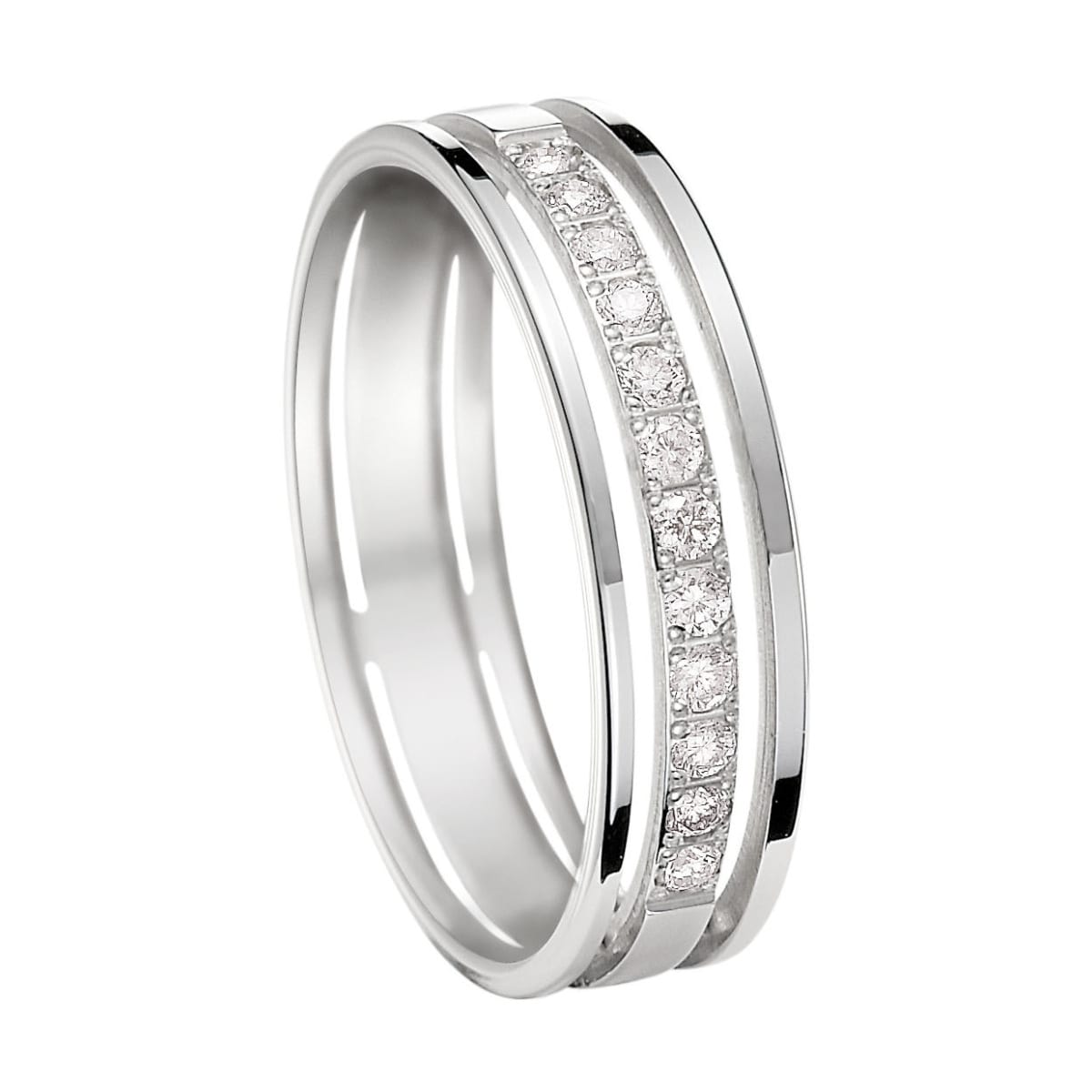 Délicate alliance de 5mm de largeur avec son fil central délicieusement serti de 12 diamants taille brillants pour un poids de 0,204 carats.