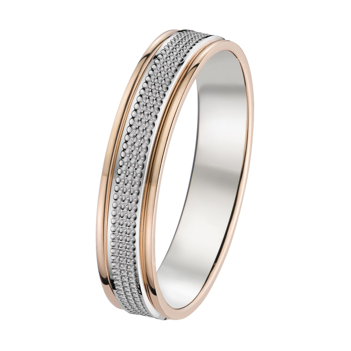 Prix à partir de 765,00€Alliance en or rouge, en or gris palladié et perlé