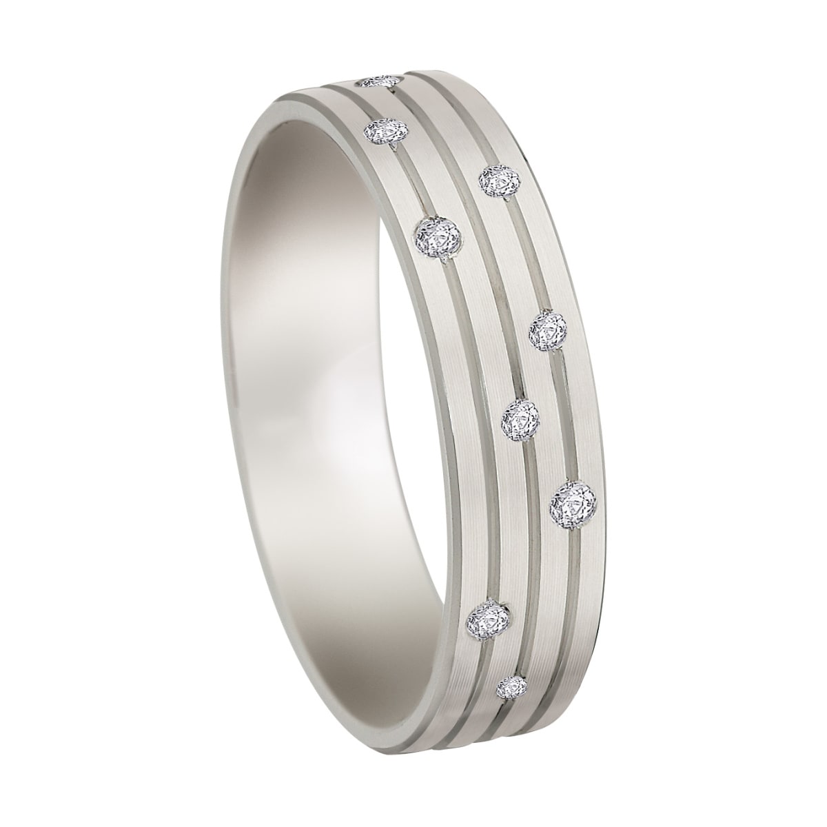 Un alliance avec une belle présence avec sa largeur de 5mm et ses 11 diamants posés comme des notes de musique sur une portée. Moderne et intemporelle à la fois !