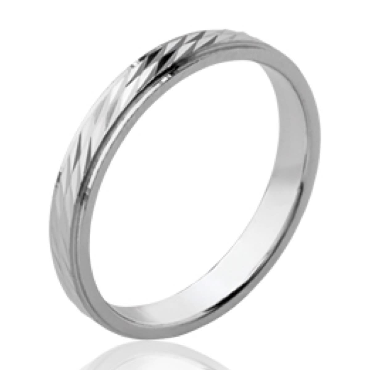Alliance en or gris palladié finement ciselée et son motif cœur