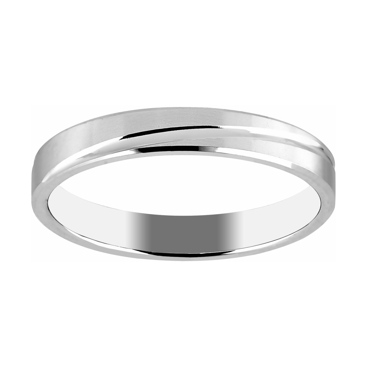 Large alliance ruban fantaisie argent avec une finition pointe de diamants sur les côtés
