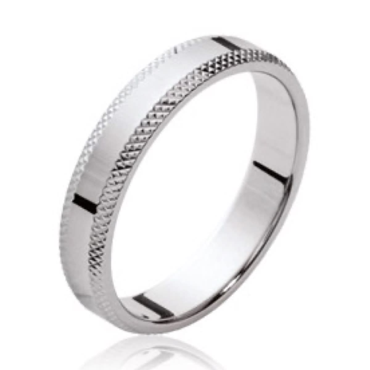 Alliance tout en argent rhodié lisse et ciselés de chaque côté