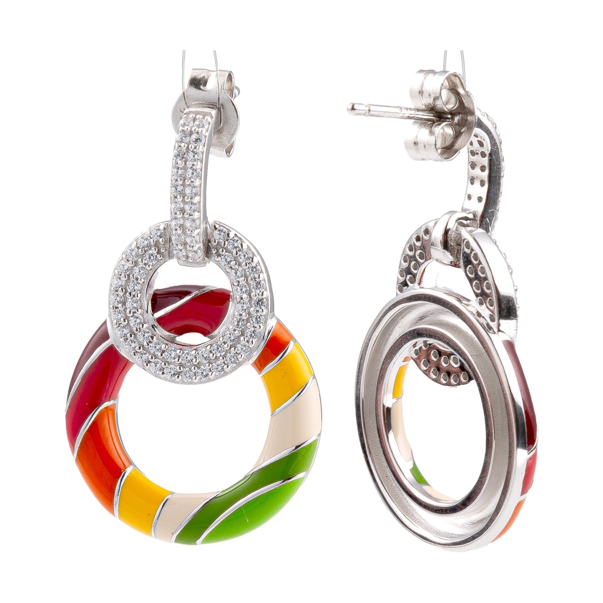 Les boucles d'oreilles zirconium Arizona se distinguent par leur double boucle raffinée, symbolisant les jeux de lumière et les reflets du soleil couchant. Les teintes vibrantes de jaune, violet et orange et les motifs dégradés apportent une touche graphique et colorée très tendance.