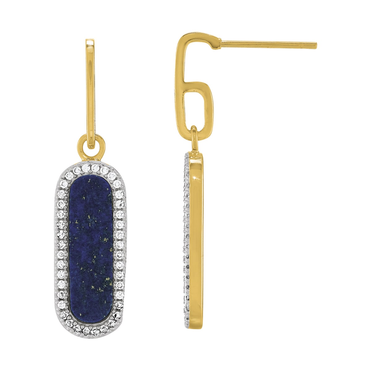 Les prix sont variables suivant le poids, la taille et le cours des matières premières.Pendants d’oreilles bicolore, lapis lazuli et oxydes de zirconium