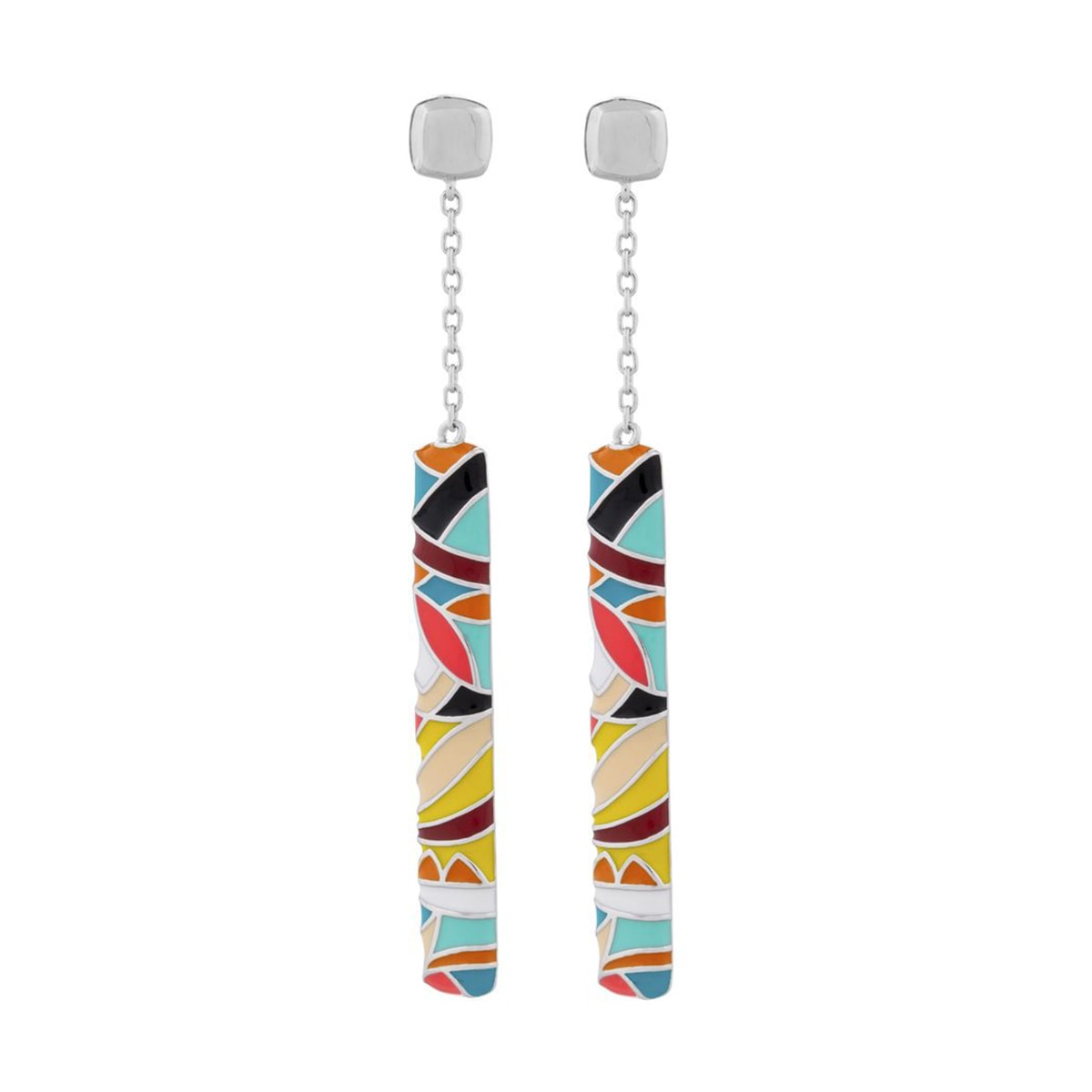 Les prix sont variables suivant le poids, la taille et le cours des matières premières.Boucles d’oreilles pendantes UNA STORIA en argent et laques de couleurs vitaminées