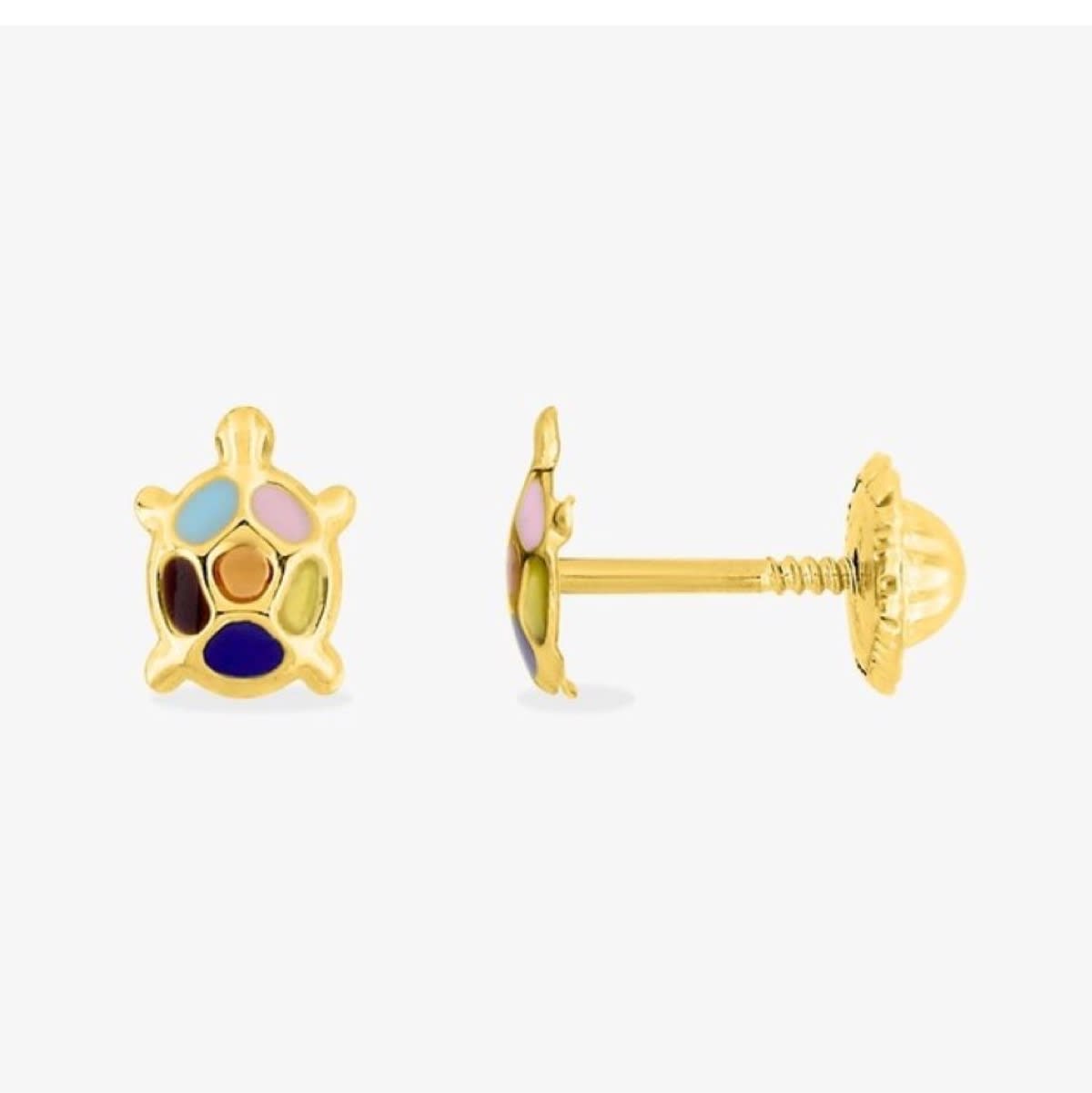 Adorables boucles d'oreilles enfants motif Tortue en or et laque multicolore.