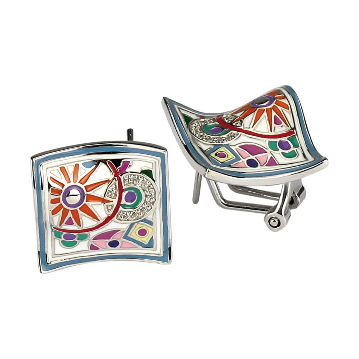 Les prix sont variables suivant le poids, la taille et le cours des matières premières.Boucles d’oreilles Femme Argent aux motifs floraux, émaux et oxydes de zirconium