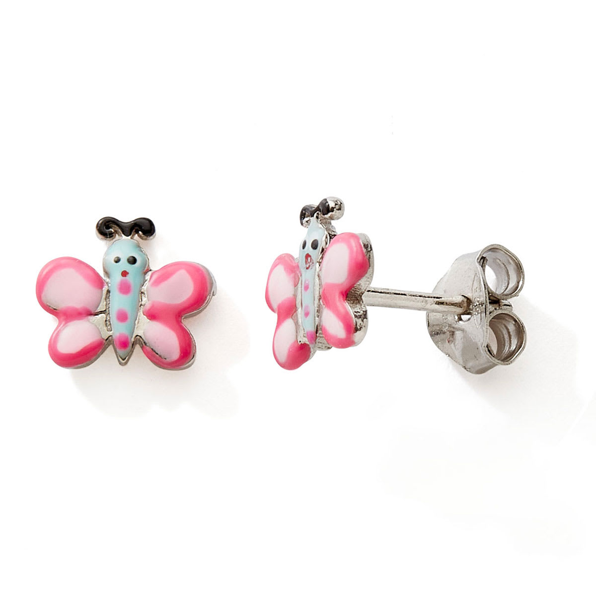 Les prix sont variables suivant le poids, la taille et le cours des matières premières.Boucles d’oreilles pour enfant en argent papillon bleu et rose
