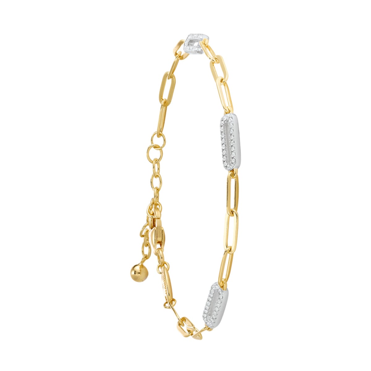 Charles Garnier Paris qui joue avec son emblématique maillon long, ici on le retrouve dans une version classique d'un bracelet alternant des maillons fins en argent et d'autres plus grands pavés d'oxydes de zirconium plaqués or. A la fois chic et minimaliste, on l'imagine aussi bien pour les looks du quotidien que pour une soirée. On adore !