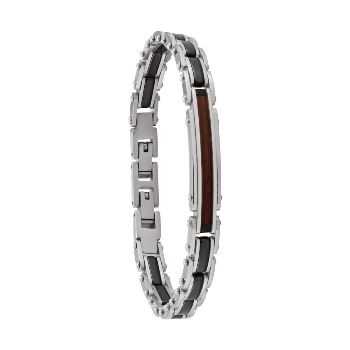 Ses maillons en acier inoxydable façon chaîne de moto sont rehaussés de bois précieux, pour la touche vintage. Ce bijou homme n'attend que vous pour tailler la route !