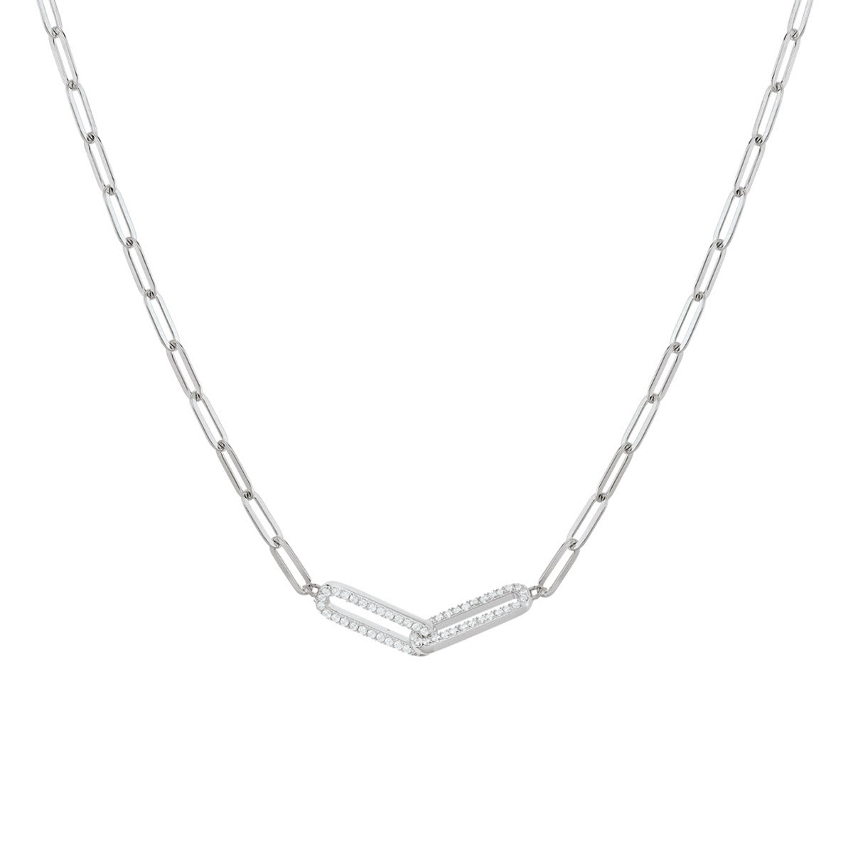On se laisse séduire par ce collier, sa chaine en mailles longues dorées et ses motifs entrelacés pavés en oxydes de zirconium. Un collier délicat et féminin qui trouvera toute sa place dans votre garde de robe de jour comme de nuit !