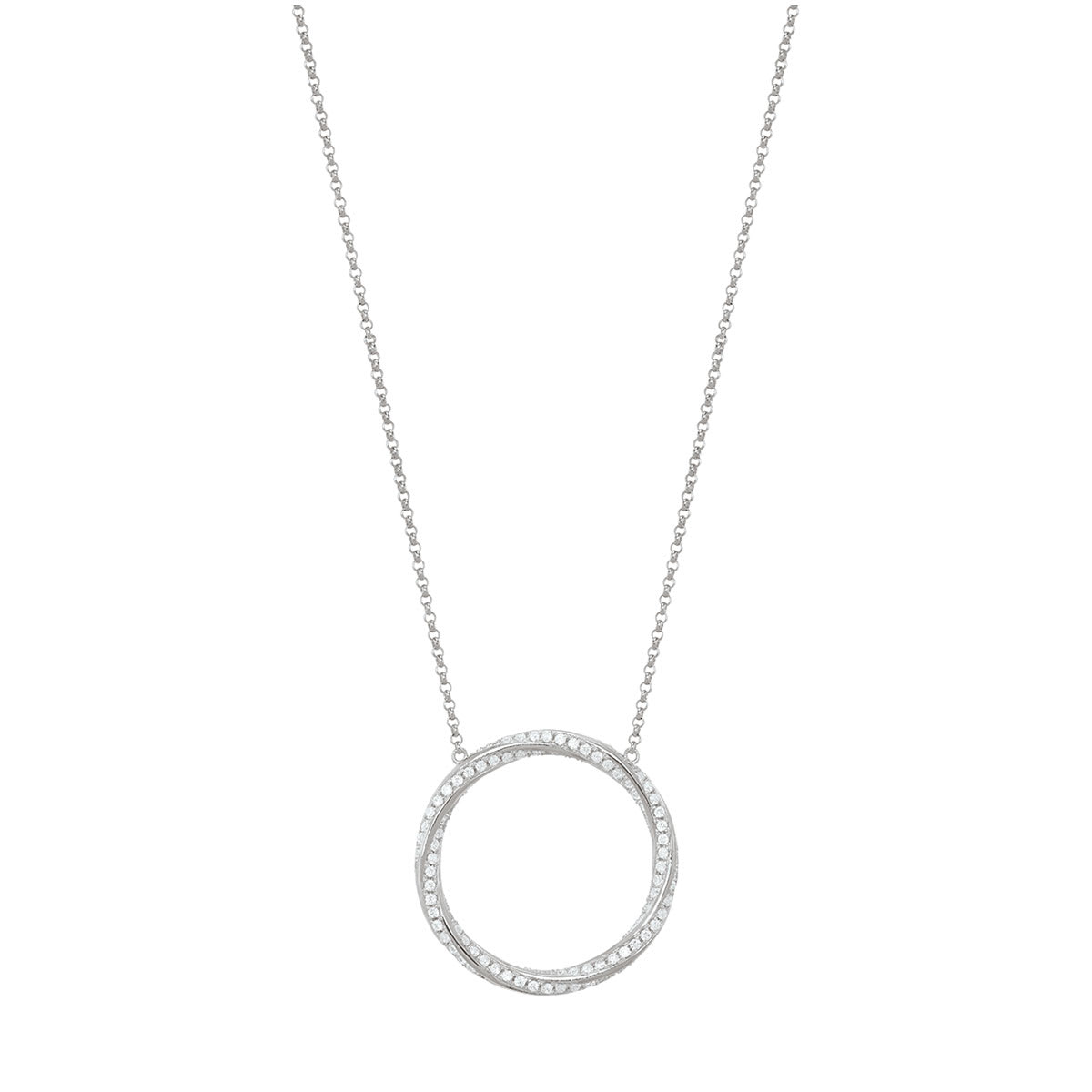 Les prix sont variables suivant le poids, la taille et le cours des matières premières.Collier chaine en argent et son motif double cercles entrelacé pavé d’oxydes de zirconium.