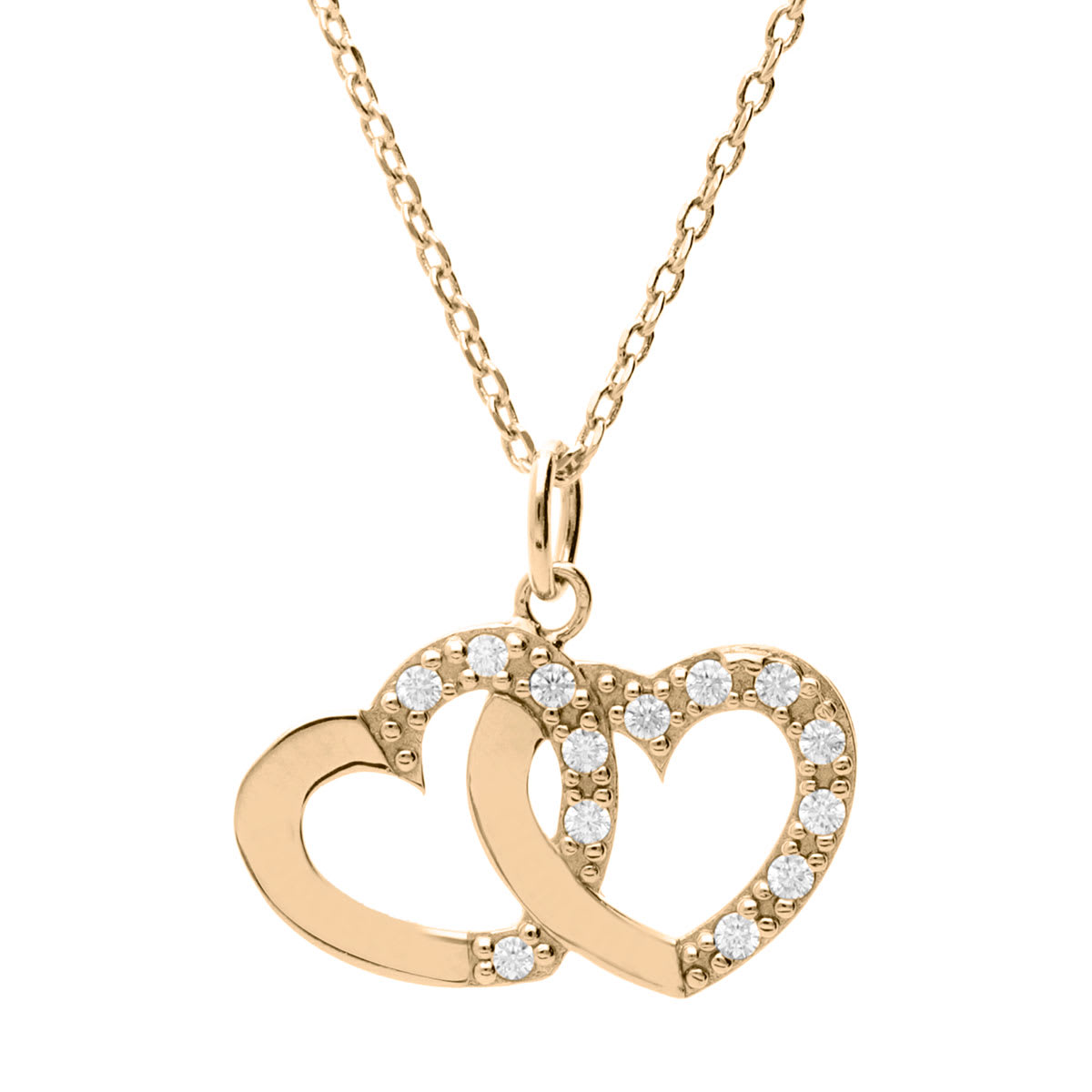 Les prix sont variables suivant le poids, la taille et le cours des matières premières.Collier au pendentif aux cœurs entrelacés en plaqué or jaune et oxydes de zirconium