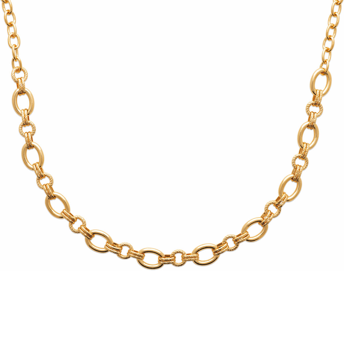 Collier avec des mailles ovales et brillantes alternées avec des maille rondes et martelées. Ce motif intemporel donne à ce bijou son aspect chic et élégant.