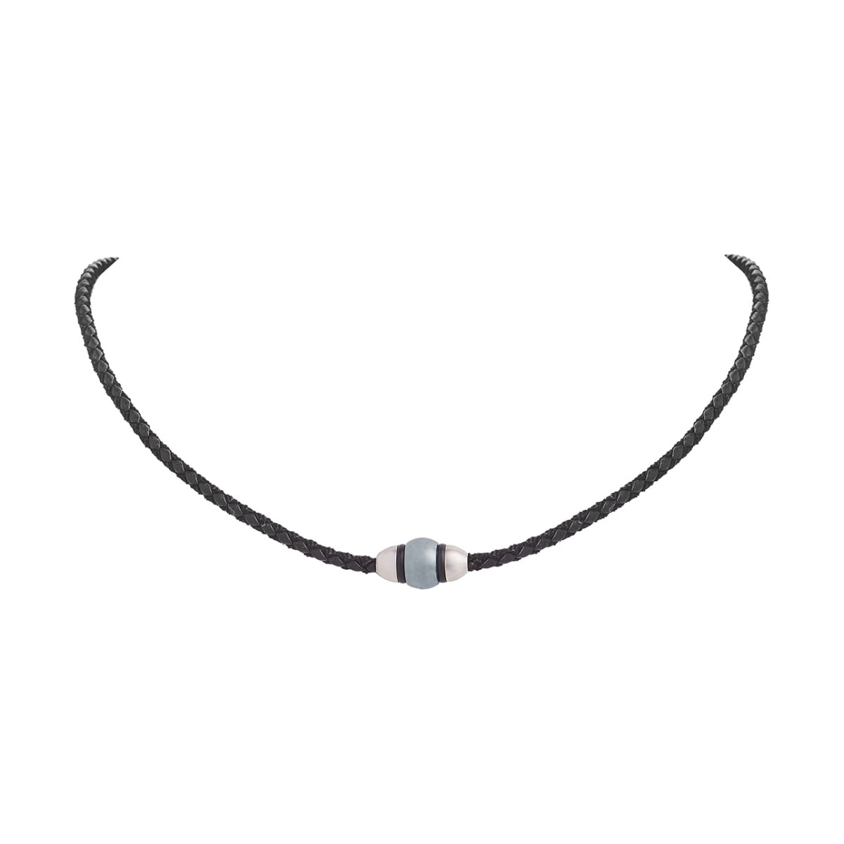 Les prix sont variables suivant le poids, la taille et le cours des matières premières.Collier d’homme en tissu et acier bicolore (noir et gris).