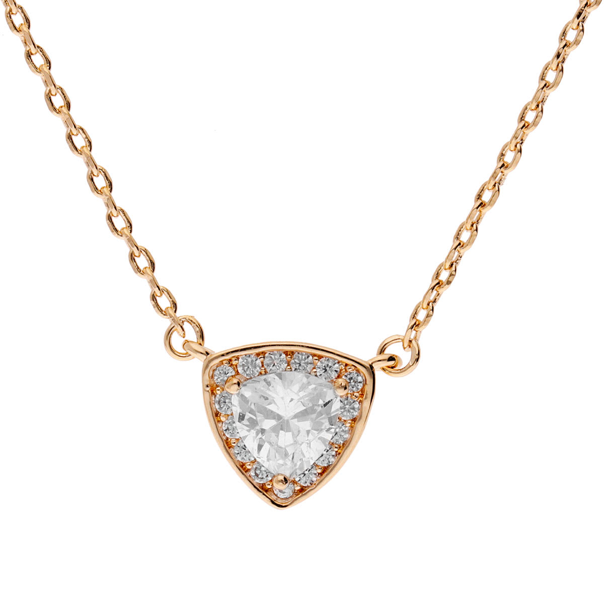 Effet précieux et unique pour ce délicat collier en oxyde de zirconium avec son entourage sur une chaine en plaqué or. Un collier qui vous accompagnera au quotidien.