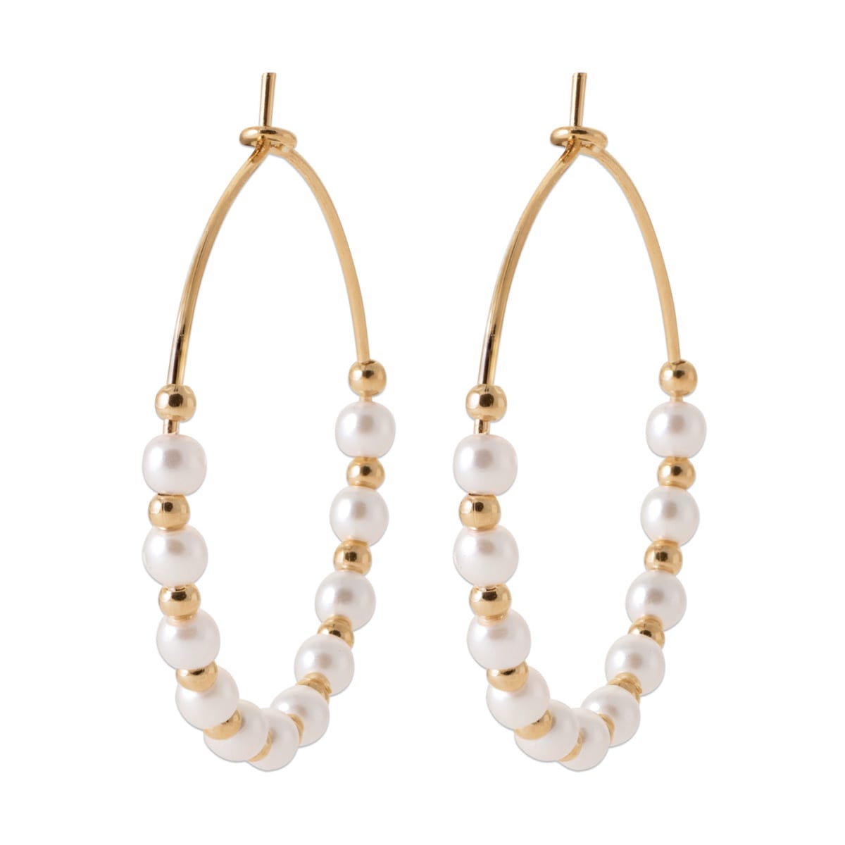 Les prix sont variables suivant le poids, la taille et le cours des matières premières.Créoles de 30 mm avec ses perles blanches et or
