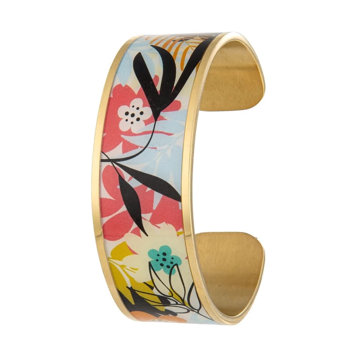Manchette de largeur 22mm en acier doré au motif de Magnolia.