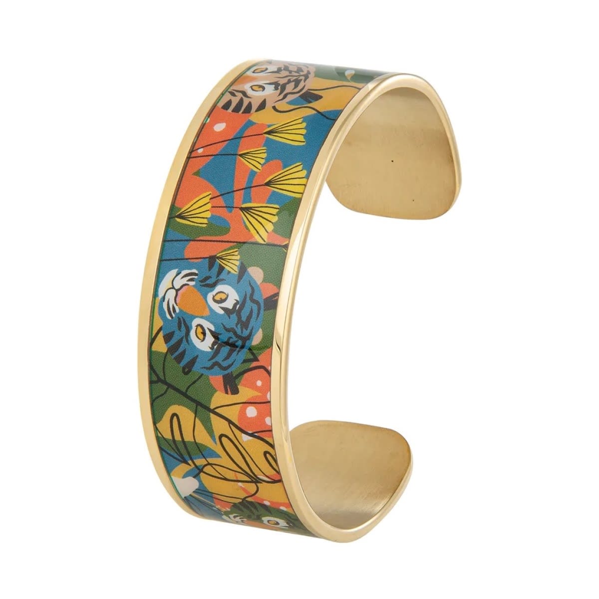 Manchette Louise’s Garden 12mm en acier doré, fleur de lys colorée
