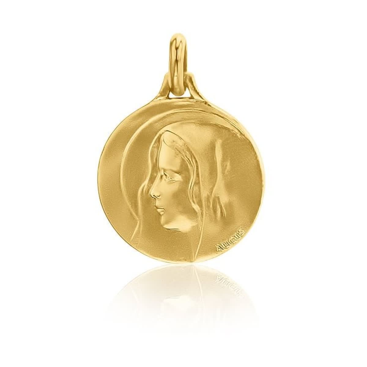 Les prix sont variables suivant le poids, la taille et le cours des matières premières.Médaille ronde de “la Vierge au voile” de 16 mm en or jaune matifié.