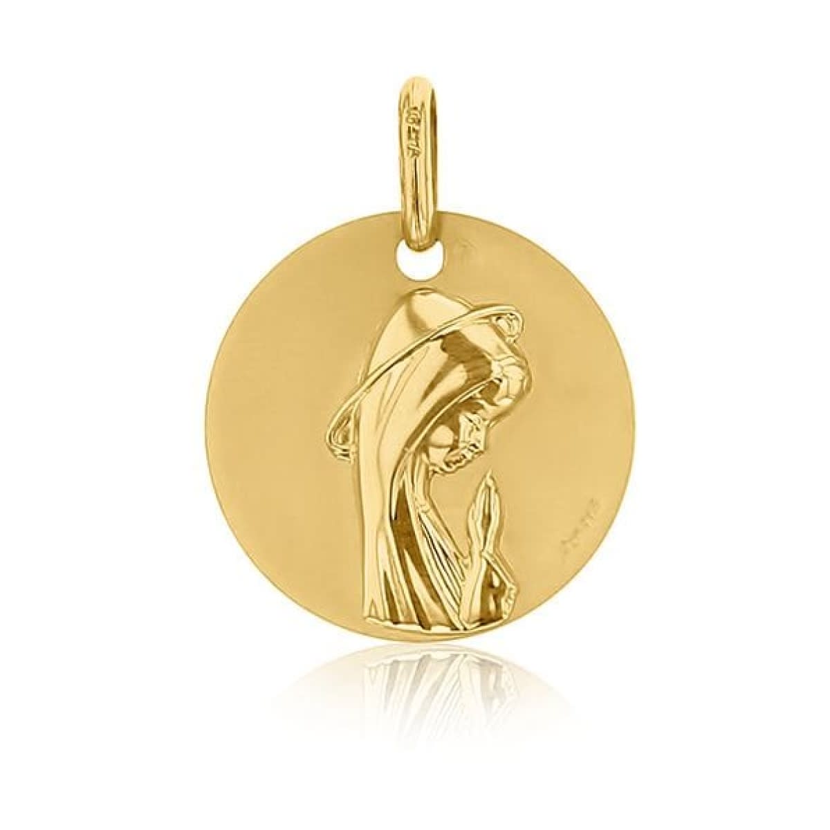 Les prix sont variables suivant le poids, la taille et le cours des matières premières.Médaille Ronde polie de “la Vierge aux mains jointes” en or jaune de 16mm.