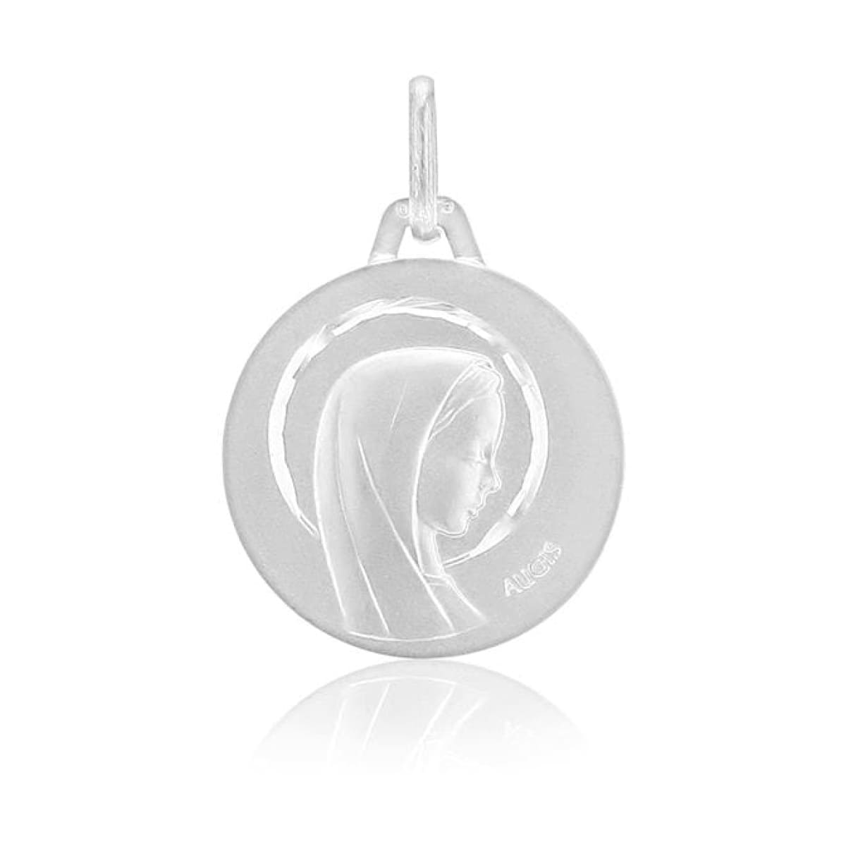 Les prix sont variables suivant le poids, la taille et le cours des matières premières.Médaille Ronde facettée de “la Vierge auréolée” de 16mm en en or blanc.
