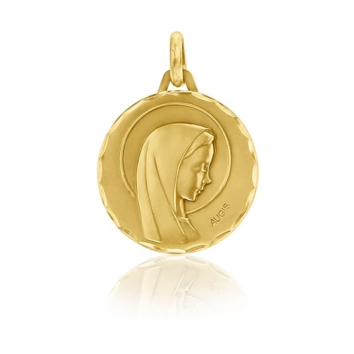 Médaille ronde de “la Vierge au voile” de profil de 16 mm en or jaune.