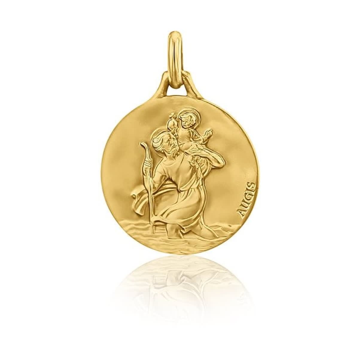Les prix sont variables suivant le poids, la taille et le cours des matières premières.Médaille “Saint Christophe” en or jaune mat de 18mm