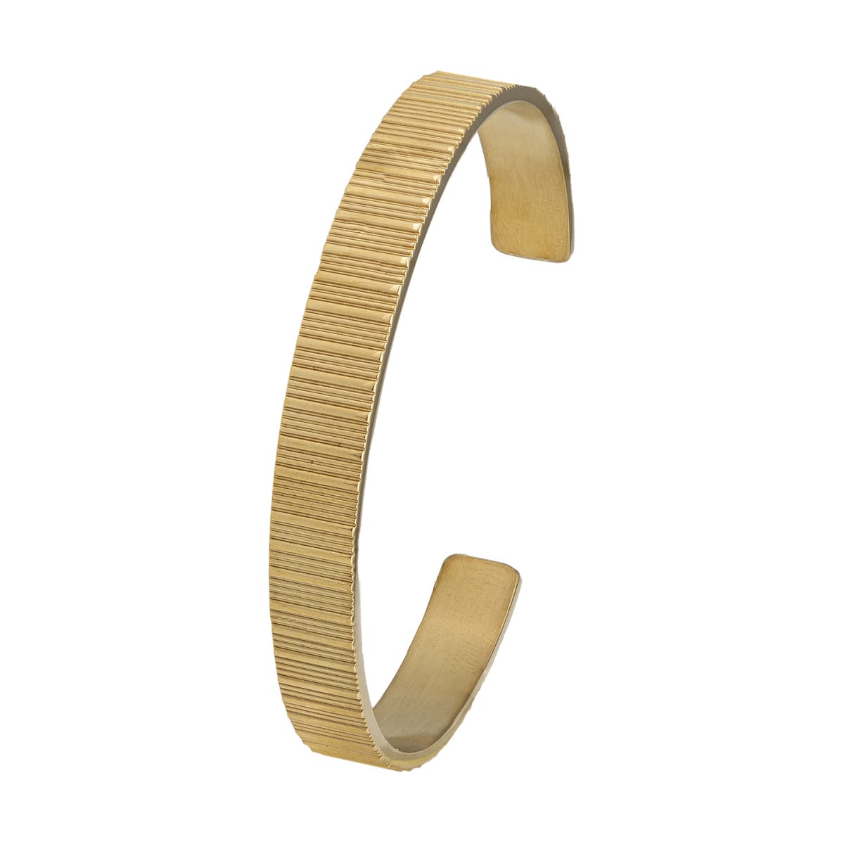 Inspiré par la structure élégante et robuste du bambou, ce jonc large est en acier doré.