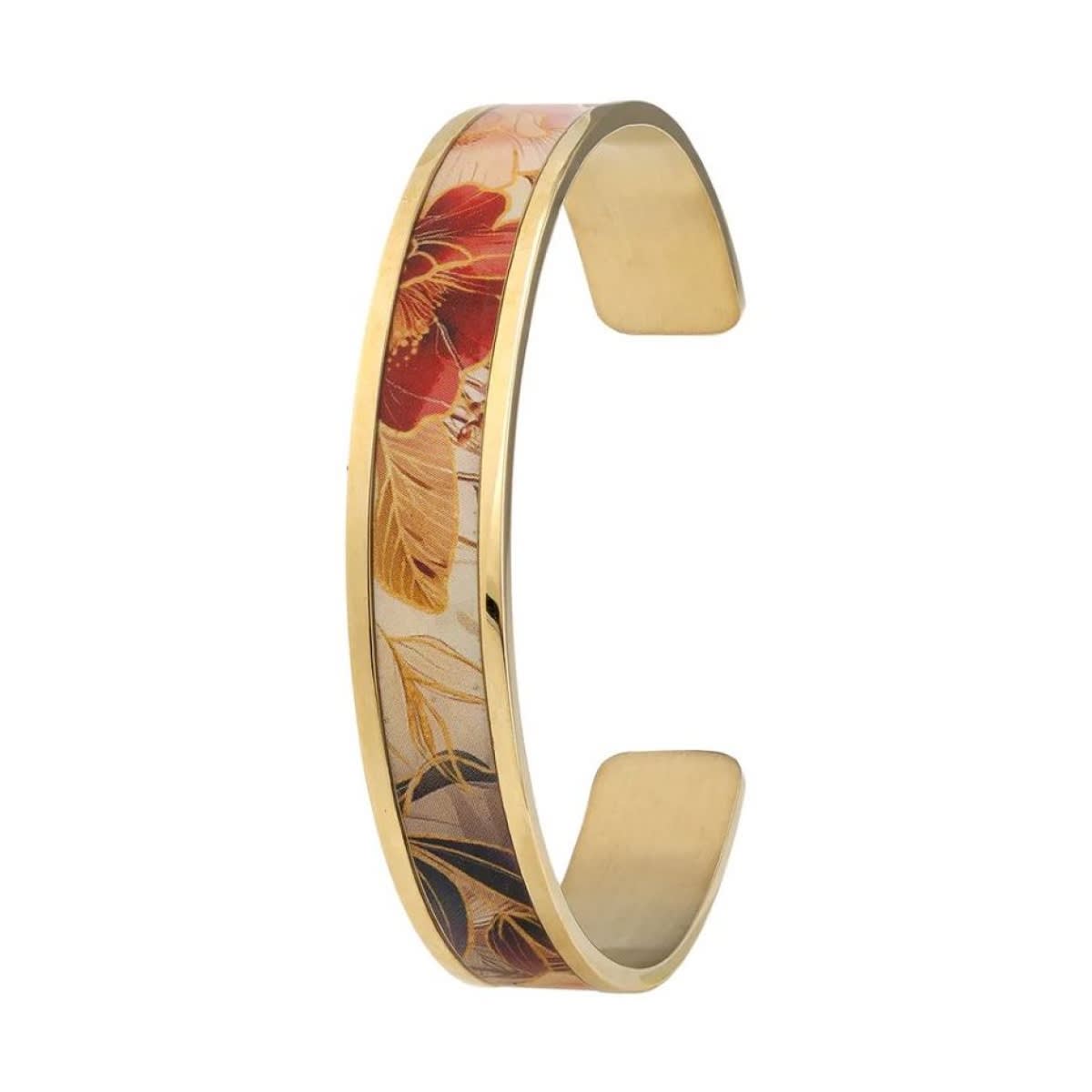 Manchette de largeur 22mm en acier doré au motif de Coquelicot.