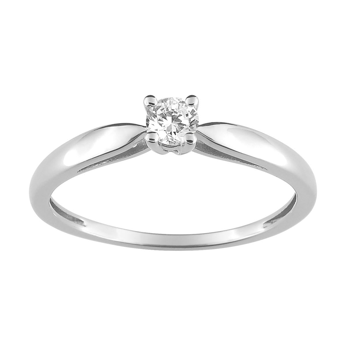Bague solitaire diamant, généralement associée à une demande de fiançailles, en or gris 18 carats et diamant 0,15 ct.