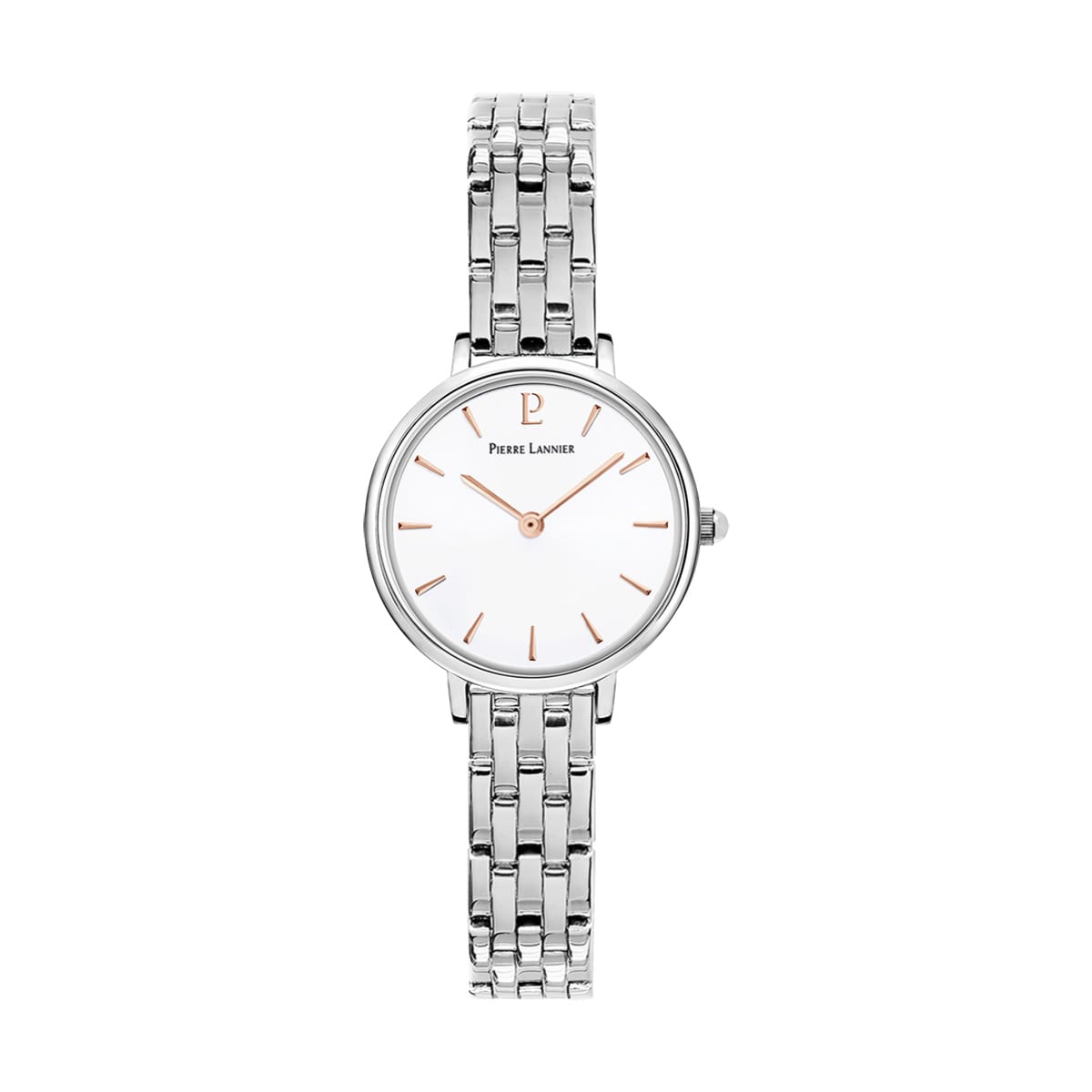Montre PIERRE LANNIER cadran blanc, bracelet acier argenté avec boucle déployante, étanche 3ATM. Garantie mouvement 2 ans
