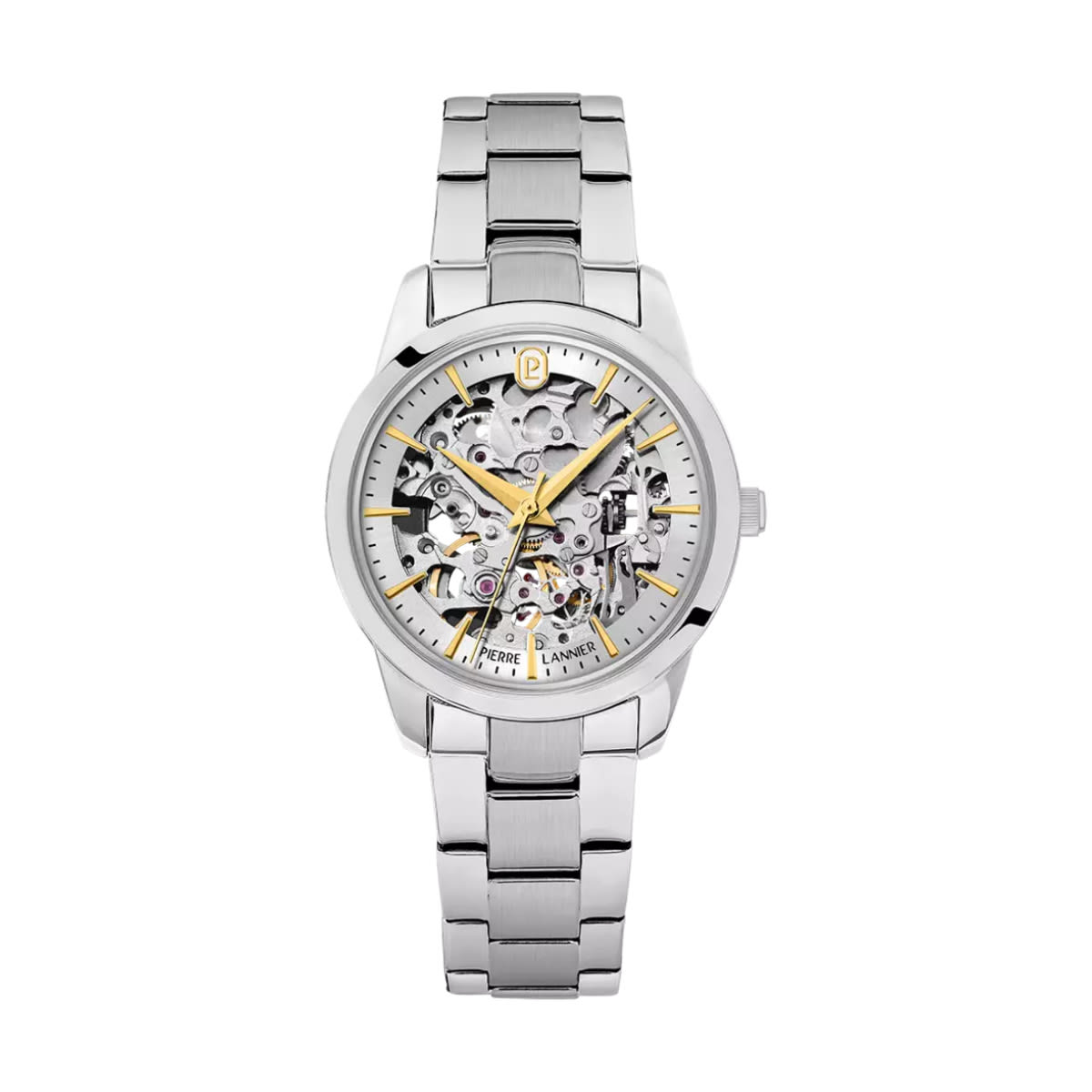 Prix de vente conseilléLa montre Thea 143H621 révèle son cœur mécanique avec un cadran squelette raffiné. Son boîtier rond en acier argenté de 35,5 mm et son bracelet acier assorti incarnent l’élégance féminine Made in France.